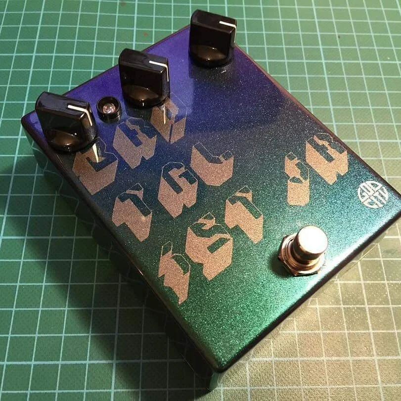 Our friend Jamie from SBC cycles built theirs up and asked us for a quick paint job. We obliged with a chromatic colour-changing flip paint over a metallic black, Ferrari Canna di Fucile picks out the pedal name and the branding was airbrushed on in ‘old english white’. Premium finishing for a hobby-level effect.