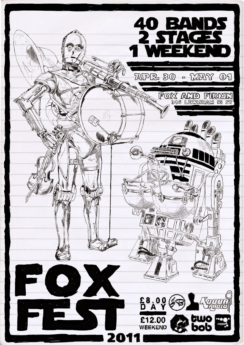 This poster accompanied a wealth of hand-drawn Star Wars themed merch and admat for the now sadly defunct Foxfest in South East London.